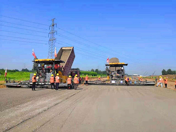 水穩(wěn)攤鋪施工現(xiàn)場 -